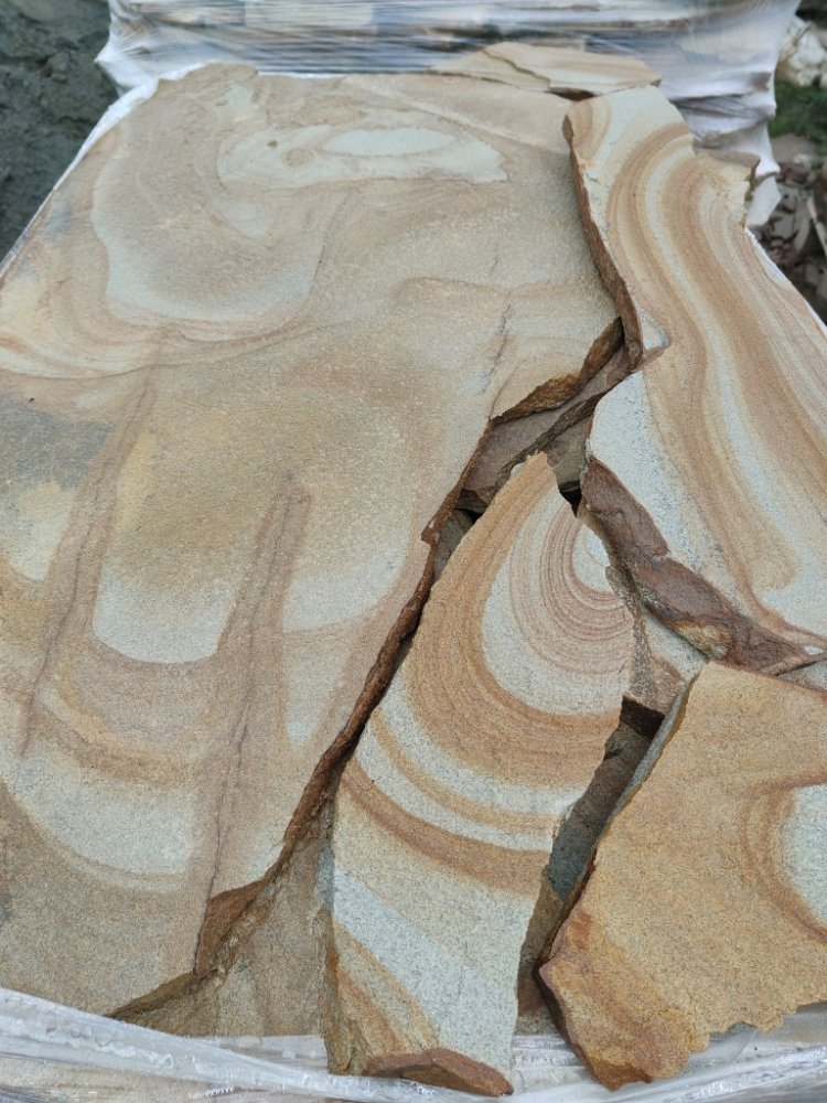 Песчаник жёлтый с разводами - для работ по мощению дорожек и площадок на бетонное основание.